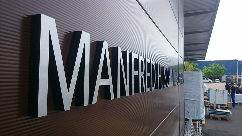 Layout und Montage von Einzelbuchstaben an Fassade. Hainmüller Gartengestaltung, Steißlingen.
